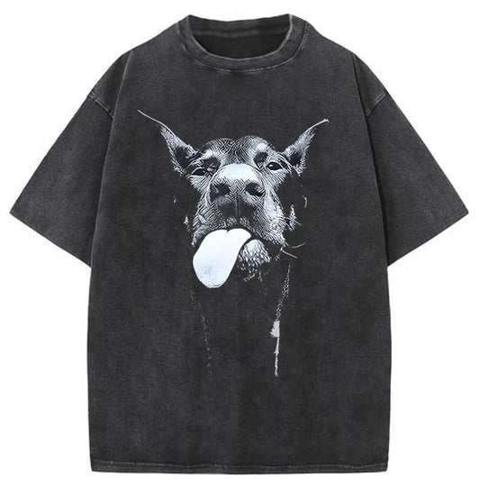 Men Gothic Letter Dog Printed T-Shirt Hip Hop Streetwear Punk Summer Vintage Washed Oversized T Shirts Tops Men Clothing