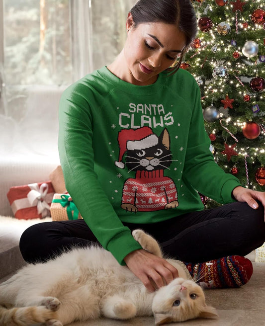 Santa Claws Ugly Christmas Sweatshirt for Women Teen Girls Funny Cat Womens Xmas Holiday Sweatshirts
