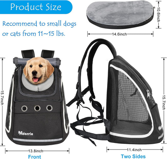 Dog Cat Backpack Carrier for Small Dogs and Cats, Safer Multifunctional Pet Backpack Carrier for Hiking, Walking, Traveling, Outdoor Activities (Black)…